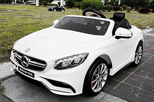 Lizenz Kinderauto Mercedes - Benz S63 AMG 2 x 35W 12V MP3 RC Elektroauto Kinderfahrzeug Ferngesteuert Elektro (Weiss)