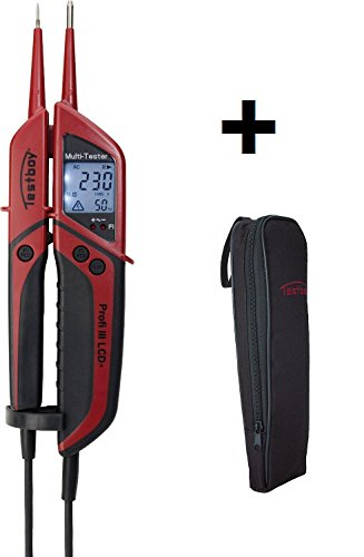 Testboy® Profi III LCD+ 3+ Zweipoliger Spannungsprüfer mit LCD-Anzeige EAN 4028532200299 inkl. Aufbewahrungstasche FI-Test Spannungsprüfung geeignet auch für Elektrofahrzeuge Photovoltaikanlagen